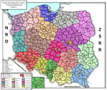 The Warsaw Voivodeship was established on 22 August 1944, by the Provisional Government of the Republic of Poland, within the borders of the Warsaw Voivodeship of the Second Polish Republic, that existed from 1919 to 1939. It replaced the subdivisions of the General Government. Its capital was located in the city of Warsaw, which itself, functioned as the separate city voivodeship.[1] On 28 June 1945 the Provisional Government of the Republic of Poland had been replaced by the Provisional Government of National Unity,[3] and on the 19 February 1947, the provisional government was replaced by the Polish People's Republic.[4]