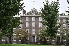 The troops roughly followed U.S. Route 13 in Pennsylvania south, crossing the Pennypack Creek Bridge along the way.[11] In Philadelphia, the force camped on the east bank of the Schuylkill River, near the site of the Market Street Bridge and Philadelphia City Hall.[12] By September 5, the French army marched through the city and was reviewed by the Congress of the Confederation. The Freeman's Journal reported that "the appearance of these troops far exceeds any thing of the kind seen on this continent, and presages the happiest success to the cause of America."[13]