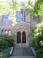 Western was established as the Northwest Normal School, a teachers' school predominantly for women although men also enrolled, by Phoebe Judson in Lynden, Washington, in 1886.[8] Eventually the school moved to Bellingham (then "New Whatcom"), and through the efforts of William R. Moultray and George Judson (Phoebe's son).[9] Governor John McGraw signed legislation establishing the New Whatcom Normal School on February 24, 1893. In November 1895, construction began on a permanent school building, now known as Old Main, the current administration building. Designed by prominent Seattle architects Warren Skillings & James Corner, it was completed by early 1897 but could not be opened to students until funds could be secured to install heating, lighting, and to do general grounds maintenance, which were not included in the original contract.[10] The first official class entered in 1899, composed of 88 students.