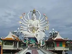 Wat Plai Laem (Thai: วัดปลายแหลม) is a wat on the resort island of Ko Samui, Thailand. Like the nearby Wat Phra Yai or "Big Buddha Temple", it is a modern Buddhist temple. The temple's design incorporates elements of Chinese and Thai traditions and was in part designed by distinguished Thai artist Jarit Phumdonming. Its main statue, which is in Chinese style, is not of Gautama Buddha. It is a form of the bodhisattva of compassion and mercy, Avalokiteśvara, called Cundi. This form of the deity is known in Chinese as "Guanyin with eighteen arms".
