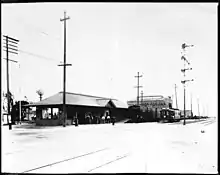Watts Station is a train station built in 1904 in Watts, Los Angeles, California. It was one of the first buildings in Watts, and for many years, it was a major stop for the Pacific Electric Railway's "Red Car" service between Los Angeles and Long Beach. It was the only structure that remained intact when stores along 103rd Street in Watts were burned in the 1965 Watts Riots. Remaining untouched in the middle of the stretch of street that came to be known as "Charcoal Alley", the station became a symbol of continuity, hope, and renewal for the Watts community. It has since been declared a Los Angeles Historic-Cultural Monument and is listed on the National Register of Historic Places.