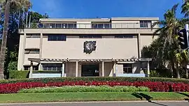 The Governor of New South Wales approved the proclamation establishing the Municipality of Waverley on 13 June 1859, and it was subsequently published in the Government Gazette on 16 June 1859.[5] The first returning officer, Charles St Julian, was appointed to conduct the first meeting of electors a few days later.[6] The first election was held on 14 July 1859, with nine Councillors elected proportionately, and the Council first met on 23 July 1859 at the Tea Gardens Hotel, with John Birrell elected as the first chairman.[7][8][9] On 21 February 1860, the council was divided into three wards electing three councillors each: Waverley Ward, Bondi Ward and Nelson Ward.[10] A fourth ward covering the western corner of Waverley, Lawson Ward, was added on 22 April 1887, thereby bringing the number of aldermen to 12.[11]