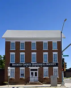 Waverly House, originally known as Daily House and now known as the Bremer County Historical Society Museum, is an historic building located at 402 W. Bremer Ave, Waverly, Iowa, 50677 United States. Built in October and November 1862, the three-story brick building cost between $7000 - $8000 to build (in 2019, figuring inflation the cost would have been approximately $250,000). It accommodated 100 guests, had a stable to keep 50 horses, a granary and a large yard. A Grand Opening Oyster Supper was held December 14, 1862. For its first ten months it served as a stage coach stop. Barnes line and Starr omnibus stopped here. In 1864 the railroad arrived in Waverly and the building was converted into a hotel. In 1879, there was a brief name change to "City Hotel", but it didn't last more than a few months. After 20 years as a hotel it was converted into a boarding house. On June 5, 1883, Emma Cronin fatally shot John F. Stevens in room 21 on the third floor. Many weddings were held at the Waverly House. On May 6, 1893, the Prohibitionists of Bremer County met at the Waverly House to appoint delegates to attend the State Convention. In 1905, the building was purchased by Dr. F. A. Osincup and became CaPhenin Chemical Company (locally known as "The Pill Factory") to manufacture medication.[2] 1946 brought a two-story and basement addition, 16' x 46'. In April 1953, the Chemical company was bought by investors in Eagle Grove, Iowa but the building was left vacant. On January 4, 1960, Bremer County Historical Society was able to raise funds to purchase the historic structure and on July 11, 1961, opened as a Museum. The building was listed on the National Register of Historic Places in 1976.[1]