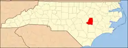 Location within the U.S. state of North Carolina