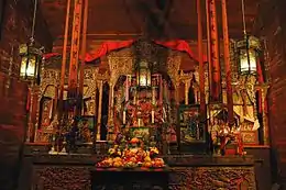 Much of the material on display inside the temple includes temple equipment, objects of Chinese art, mining tools, and weapons used in the 1854 Tong War. The temple's patron saints are Xuantian Shangdi and Guan Di.