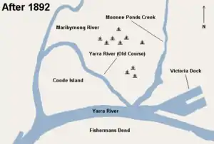 Under the guidance of British civil engineer John Coode, a major engineering project began in the 1880s to reroute the course of the Yarra River, which resulted in the widening of the river for shipping and the creation of a new Victoria Dock (the name was previously used by one at Queens Bridge as early as the 1850s). The dock was lined with wharves and light industry grew around the nearby western rail yards of Spencer Street railway station (now Southern Cross railway station), which were used for freighting the goods inland.