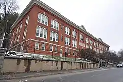 The school was built in 1898, during the height of Waterbury's growth at the turn of the 20th century. It was enlarged twice, in 1906 and 1917, to meet increased demand. It was designed by local architect Wilfred E. Griggs, best known for his commercial, industrial, and civic work, and the 1917 addition was designed by Louis Walsh, another local architect. The school marked a trend in the city of consolidation of a large number of district schools, and of the introduction of modern school construction techniques that emphasized fireproof construction, natural lighting for classrooms, and integrated heating and sanitation facilities. The school was closed in 1977,[2] and has since been converted into senior housing.