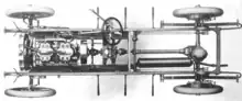 A conventional three-speed sliding selective transmission, with a single reverse, was introduced, beginning with the 1909 models.[1] Although the six-cylinder roadster employed a transaxle (transmission located at the differential), the remaining models continued to have the transmission located mid-chassis.[1]