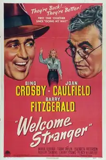 Welcome Stranger is a 1947 film directed by Elliott Nugent and starring Bing Crosby, Barry Fitzgerald, and Joan Caulfield. It was filmed in Hollywood with location shots at Munz Lakes during March to May 1946. Elliott Nugent appeared in one scene as a doctor sent to examine Barry Fitzgerald and that scene was directed by Billy Wilder.[3]