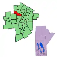 Following the 2008 electoral redistribution, the riding was dissolved into St. James, Minto, and the new ridings of Tyndall Park (electoral district) and Logan. This change took effect for the 2011 election.