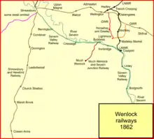 - the Much Wenlock and Severn Junction Railway from Buildwas to Much Wenlock;