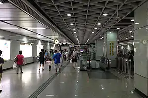 Wenchong station (Chinese: 文冲站), formerly Wenyuan station (文圆站) during planning and construction,[1] is a terminus of Line 5 of the Guangzhou Metro.[2] It is located under the junction of Dashadi Donglu (大沙地东路) and Shihua Lu (石化路), in the Huangpu District.[3][4] It opened in December 2009.[5] In the future, Line 5 is planned to be extended from Wenchong to Huangpu New Port.[6]