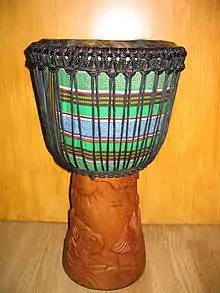Rhythm is the foundation of West Africa's traditional music,[17] so percussion instruments play a major role in constructing its sounds. Traditional music of West Africa incorporates the use of a variety of percussive instruments, the most popular of which is the djembe. Known also as the 'magic drum' or the 'healing drum', the djembe is spiritually important to West African tradition as it is believed that three spirits reside within the drum. These spirits are those of the tree which provided the drum's wooden frame, the animal which gave its skin for the drumhead and the carver or drum assembler.[18]