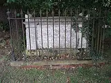 It was not only the vicars that were in trouble:a parishioner who in 1520 abused the rector in the pulpit, calling him a false, forsworn man, may have held Protestant views.[49] In 1556 a member of the parish, Agnes George, part of the Stratford Martyrs, was out of favour with Queen Mary, for refusing to attend church until the service was no longer conducted in the Roman Catholic tradition.[50] She was then tried before the Bishop of London, Reverend Edmund Bonner, along with 12 others.[51] During her time at Newgate Prison she wrote a letter attacking the Pope for being the Anti-Christ, saying that she was baptised in Christ's Church not Rome and refusing to believe that bread and wine became the body and blood of Christ. She was burned at Stratford[52] before 20,000 people. In 1879, a large monument was erected in St John's churchyard in Stratford Broadway, to commemorate the thirteen and others who were executed or tortured in Stratford during the persecutions.