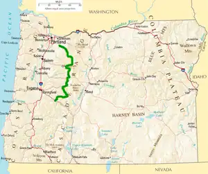The route is roughly northโsouth, from Estacada southeast of Portland to Oakridge on the Willamette River southeast of Eugene. Much of the route is very sparsely populated, passing through timber regions in the Cascades.