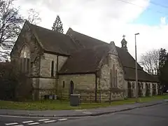 Until the early 20th century, West Green was in the Parish of Ifield. Its Anglican parish church, St Margaret's, was distant from the community; so in 1880 a chapel of ease, St Mary Magdalene's, was built.[11][36] This was replaced by a larger church, St Peter's, in 1892. This was given its own parish in 1901: the Parish of West Crawley was created from territory moved from Ifield.[12][36] St Peter's Church was designed by W. Hilton Nash[37] and built by local construction firm owner Richard Cook.[38] The sandstone building, with a chancel, single-aisled nave, vestry and bell-turret,[36] holds 439 people and cost £2,800 (£323,900 as of 2009) to build.[39] It was for many years a part of the Parish of Crawley under St John the Baptist's Church.[40] On 8 September 2017 St Peter's became the parish church of the newly created Parish of West Green St Peter.