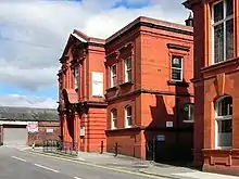 The red brick and terracotta town hall and Carnegie library were built between 1902 and 1904 to the designs of Bradshaw & Gass.
