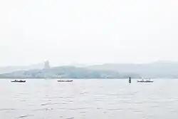 West Lake (Chinese: 西湖; Wu Chinese pronunciation: [si ɦu]) is a freshwater lake in Hangzhou, China. It is divided into five sections by three causeways. There are numerous temples, pagodas, gardens, and natural/artificial islands within the lake. Gushan (孤山) is the largest natural island and three artificial islands: Xiaoyingzhou (小瀛洲), Huixin Pavilion (湖心亭), and Ruan Gongdun (阮公墩) stand at the middle of the lake. Leifeng Pagoda (雷峰塔) and Baochu Pagoda (保俶塔) are separated by the lake. Mirroring each other, the basic pattern of "one mountain, two towers, three islands, three banks, and five lakes" is formed.