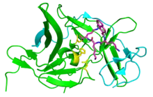 Ribbon representation of the NS2B/NS3 protease of West Nile virus