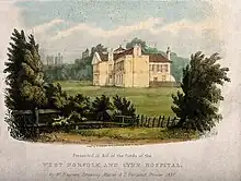 A meeting on 13 October 1833 in King's Lynn of local gentry, chaired by MP Sir W. H. B. Ffolkes, led to the hospital's construction and opening in 1835 at a cost of more than £2,000.[1] An 1845 guide to the area described it as a "spacious and handsome building of white brick" which had accommodations for about 40 patients; the Marquess of Cholmondeley was the president of the hospital.[2]