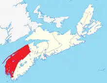 South Western Nova and South West Nova were ridings that covered roughly the same geographic area and were represented in the House of Commons from 1968 to 1979 and 1979 to 1997, respectively.