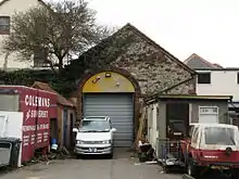 As the railway was effectively split into two halves by the incline, two engine sheds were needed, one for the lower level line from Watchet to Comberow and another for the upper level south of the incline top. Initially the lower level used a temporary locoshed at Torre siding.[126] This was replaced by a permanent one "road" (track) structure known as "Watchet". It was originally built of wood, but was rebuilt in masonry and slate in the Winter of 1872-3, with part of the original shed retained at the northern end to act as a workshop. In 1911 the shed was extended at the southern end to cater for the two locomotives participating in the automatic control trials.[127][128][129] This extension was removed after the trial locomotives were taken away.[130] The shed stood east of the line in the Whitehall area, a short distance south of Watchet (WSMR) station.[131][132] It was open for three periods: April 1857 to 7 November 1898, 4 July 1907 to 1910 and 1911–14. In 2015 it was in use as a dwelling.