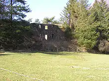 In 1907 another venture, the Somerset Mineral Syndicate, leased the railway and resumed mining, re-opening the railway on 4 July 1907 with a one-off special train and the town band.[65][66][67] The lower section of the line and the incline were brought back into use, but the Gupworthy extension from Brendon Hill remained closed. The incline reverted to gravity operation.[12] £1,500 was expended on a new jetty at Watchet, the previous one having been wrecked by storms.[68] A kiln costing £2,000 was built at Washford to process the ore into briquettes, thereby reducing volume and impurities.[69][70] and a new 2 ft (610 mm) gauge tramway was built from Brendon Hill to the Colton Iron Mine's western adit. This was at a lower altitude than Brendon Hill, so the tramway had to ascend from the mine on a new double track incline worked by a stationary steam engine using a two-cylinder winch drive with twin drums.[71][72][73] The tramway, which included a wooden viaduct,[74][75] ran nearly 2 miles (3.2 km) to Brendon Hill, where the ore was tipped into standard gauge wagons[76][77] which were lowered down the incline and hauled to Watchet.