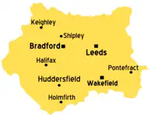 ![]() 2011 map of the West Yorkshire Built-up Area, showing subdivisions | |