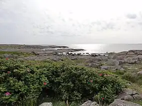 In the nature reserve, there are plant species like bladder campion, harebell, Armeria maritima, sea kale, Glaux, Seriphidium maritimum, sea sandwort, and Gentianella uliginosa. The shore meadows of Western Getterön were used for grazing until the mid-1960s. When the grazing stopped, the landscape didn't grow to, because of the thin soil. Since 1998, the area is used for grazing again. Western Getterön is also a birdwatching site, mostly for seabirds and migratory birds, even if Getterön Nature Reserve on the other side of Getterön is more well-known and situated closer to Varberg. Northern gannet, northern fulmar, auks, parasitic jaeger, and European storm-petrel are some species that have been observed at Western Getterön.