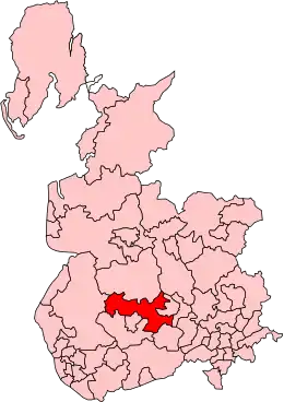 The Redistribution of Seats Act 1885 divided the existing constituency of South East Lancashire into eight single-member seats. The new seat of South-East Lancashire, Westhoughton Division comprised an area surrounding, but not including, the County Borough of Bolton.[1] It consisted of the towns of Aspull, Blackrod, Horwich, Little Lever, and Westhoughton, and the surrounding townships of Anglezarke, Bradshaw, Breightmet, Darcy Lever, Edgworth, Entwistle, Great Lever, Harwood, Heaton, Longworth, Lostock, Middle Hulton, Over Hulton, Quarlton and Rivington, plus Turton Urban District, and the parts of Rumworth, Sharples and Tonge with Haulgh outside the Parliamentary Borough of Bolton.[2][3][4]