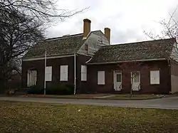 After his marriage in 1741, Gerrebrant Van Houten built a brick farmhouse with a frame addition on this site. His son, Dirck lived here during the American Revolutionary War. General George Washington visited here while he was staying at the Dey Mansion in 1780. The original house burned in 1830, and Dirck's son Adrian rebuilt and enlarged it in 1831. After Adrian's death in 1855, the Society for Establishing Useful Manufactures (S.U.M.) bought the house. The Van Houten House was purchased by the city of Paterson in 1889.[5][6][7]