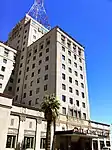 The 240 ft (73 m) steel tower and 40 ft (12 m) antenna on top of the building were erected in 1949 to broadcast Phoenix's first television station, KPHO-TV channel 5, taking the total height of the structure to 488 ft (149 m), making it the tallest structure in Downtown Phoenix.[18] In 1960, KPHO moved to its new transmitter on South Mountain. The antennas was used in the 1970s by KXTC 92.3 FM,[19] and later became a cellular telephone tower.[20]