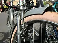 The Westwood rim style of cycle rim used on bicycles was one of the original steel rim designs, developed during or before 1891 by Frederick Westwood of Birmingham.[1] Bowden brakes and cables designed for use with this rim were introduced in 1896.[2] Westwood rims have also been found ideal for use with drum brakes. They were last used on the roadster cycles found in Britain up to the 1980s and still common in South and East Asia and Africa and becoming common once again in Europe. Westwood rims have rounded sides, so they are not suitable for use with caliper brakes.[3] Westwood rims features a wide single-wall cross section, the inside circumference of the rim has a contoured section shape to aid with strength. Today Westwood profile rims found in the West are mostly used in drum brake system roadsters and, to a lesser degree, in bicycles with coaster brake systems.