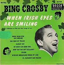When Irish Eyes Are Smiling is a Decca Records album by Bing Crosby of songs with an Irish theme. It was issued as a 10” LP as catalog No.DL 5403.[1] Some of the songs had earlier been issued as a 3-disc 45rpm set (9-89).[2]
