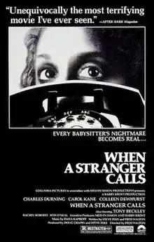 When a Stranger Calls is a 1979 American psychological thriller film written and directed by Fred Walton, co-written by Steve Feke, and starring Charles Durning, Carol Kane, Colleen Dewhurst and Tony Beckley. Its plot follows Jill Johnson, a young woman being terrorized by a psychopathic killer while babysitting, the killer's stalking of another woman, his returning to torment Jill years later, and a detective's trying to find him. Rachel Roberts, Ron O'Neal, Carmen Argenziano, and Rutanya Alda appear in supporting roles. The film derives its story from the folk legend of "the babysitter and the man upstairs".[5][6]