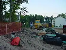The road became the link for communities such as Highland to the nearest train station in Laurel.[55] After the great depression, many family farms were sold to pay back taxes and were subdivided into lots for owner-built homes. Construction of these homes peaked after World War II. Shortly after city water was provided to the Howard county residents in the 1960s,[56] Whiskey Bottom Road was designated a collector road. The majority of home construction from that point on has been in the form of developments on subdivided property managed by homeowners associations. Only one house on the historic road is listed in Howard County's Historic property inventory: The Joseph Travers House, a Folk Victorian dwelling built on land called "Sappington's Sweep" in 1890 over the site of an earlier 1862 house.[57]