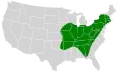 The disease was first reported in January 2007 in New York caves,[20] although it was retrospectively detected in a photograph taken in early 2006. It spread to other New York caves and into Vermont, Massachusetts, and Connecticut by 2008.[46][47] In early 2009, it was confirmed in New Hampshire,[48] New Jersey, Pennsylvania,[49] Virginia,[50] West Virginia[46] and in March 2010, in Ontario Canada, Maryland,[51] Middle Tennessee, Missouri,[52] and Quebec, Canada.[53][54] In 2011, the syndrome was confirmed in Ohio,[55] Indiana,[56] Kentucky,[57] North Carolina,[50] Maine,[58] New Brunswick and Nova Scotia.[59] In the winter of 2011–2012, Alabama,[27] Delaware[60] and Arkansas[61] confirmed the disease in bats and new cases showed up in northeastern Ohio,[62] and Acadia National Park in Maine.[63] Confirmed cases appeared in 2013 in Georgia,[64] South Carolina,[65] Illinois,[66] and the Canadian province of Prince Edward Island.[67] In March, 2014, WDNR and USGS staff conducting routine surveillance detected white-nose syndrome in a single mine in Grant County Wisconsin and the USGS National Wildlife Health Center later confirmed the disease.[68] In April, 2014, the Michigan Department of Natural Resources announced that the disease had been found in Alpena County, Mackinac County, and Dickinson County.[69] In May, 2014, after retesting, the Myotis velifer specimen from Oklahoma and other swabs and samples from the area tested negative, and Oklahoma and Myotis velifer were removed from the list of WNS suspects.[70]