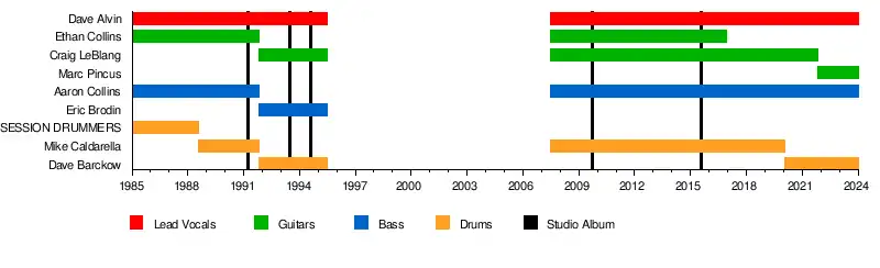 - Dave "D-Bone" Alvin – vocals, harmonica (1985–1995, 2007–present)