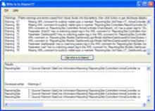 Who Is To Blame is a utility that processes the warnings/errors from Microsoft Visual Studio and then uses the Subversion (SVN) Blame tool to generate a report of which software developer added/amended the line causing the warning/error. It is free software released under the GNU General Public License. It uses SVN and Microsoft .NET Framework 3.5.