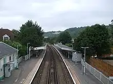 Whyteleafe railway station serves the village of Whyteleafe right on the border of Greater London and Surrey, England. It is 17 miles 58 chains (28.5 km) from Charing Cross. The station and all trains serving it are operated by Southern, and it is on the Caterham Line.