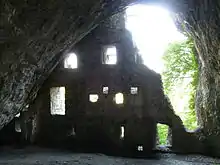 Cave behind the castle wall, in which the housing and storage was