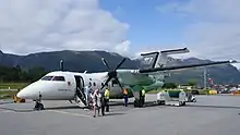 Four additional regional airport opened in 1986 and 1987.[3] The following three years Widerøe took over services at four airports from the failing Norving.[4] Norsk Air was bought in 1989, making Sandefjord Airport, Torp a major base.[5] The entire fleet was replaced with the de Havilland Canada Dash 8 between 1993 and 1995.[6] From 1997 all subsidized routes became subject to PSOs, although Widerøe has been able to win most tenders.[7] Except out of Torp, International scheduled flights commenced in 1994 and since Widerøe has provided a small range of international destinations as part of their network.[8] Widerøe took over SAS Commuter's operations in Northern Norway in 2002[9] and SAS' operations in Western Norway in 2010.[10]