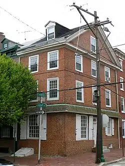 Built in 1764 in Philadelphia's former Southwark district for Thomas Maloby (alternate spelling "Mallaby"),[3] a rigger in Philadelphia's large shipping industry, this historic structure was owner-occupied in 1765, according to zoning records held by the city of Philadelphia. The owners, Maloby and his wife, Christiana, operated a bar room in the building's front parlor and a dining room in the back parlor, which also served as their family's personal dining room. That back parlor was erected adjacent to a small kitchen area at the back of the home during the home's original construction period.[4]