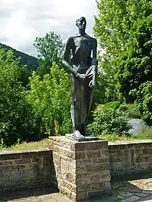 He applied to his employers to back his application to sponsor his application to study at the academy, but was turned down for reasons that involved the risk of "Verbürgerlichung" (loosely: "bourgeoisization"). He therefore made the application anyway, on his own responsibility, and was accepted. He was a student at the Dresden Academy of Fine Arts between 1953 and 1958.[2] He began his study of sculpting in 1953, taught by Walter Arnold and Arnold's assistant Gerd Jaeger. Another of his teachers was Hans Steger. The focus of the training at Dresden was on neoclassical form, backed up by compulsory courses in drawing, on use of plaster casts and on nature. The study of anatomy and history of art were also included and required.[4]