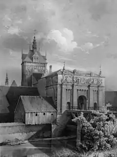 Willem van den Blocke moved on 18 June 1584 to Danzig (Gdańsk), the center of the Vistula delta Mennonites, carrying with him a recommendation by Stephen Báthory, the king of Poland. As he was in royal employ, he did not have to join the local guild. He ran a workshop in Danzig until his death[5] His most important work in Danzig was the design of one of the gates in the city walls, called the High Gate (completed in 1588). He also created numerous epitaphs and tombs. He also designed the facades of town houses in Danzig, Toruń (Thorn) and Elbing (Elbląg).[1]