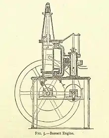 William Barnett was an engineer involved in the early development of internal combustion engines, and his work and patent are described over several pages in Dugald Clerk's book on Gas and Oil Engines.[3] In Barnett's UK patent (No 7615 of 1838), which was entitled "Production of motive-power",[4] Clerk states that "Barnett's inventions as described in his specification are so important that they require more complete description than has been accorded to earlier inventors", and he then proceeds to discuss Barnett's patent over several pages.