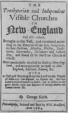 Visible Churches 1689 composed by George Keith, printed by William Bradford