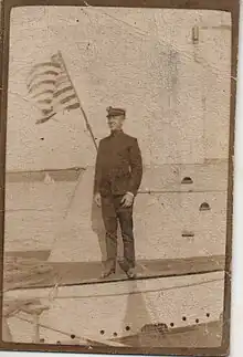 As an Ensign, Verge was assigned to his first ship, the USS Utah (BB-31),[1] as the Communications officer in June 1924 upon graduation, being selected as one of the Spanish interpreters for General Pershing on his South American Good Will Tour. Upon their return to New York, he was transferred to the USS Bainbridge (DD-246) as the Torpedo and Gunnery Officer,[1] and then to the USS Stewart (DD-224) as her Torpedo and Gunnery Officer for three months until his reassignment to the USS S-32 (SS-137), again serving as the ship's Torpedo and Gunnery Officer, but also taking on the role of Communications Officer. While serving in the S-32, Verge applied for a flight physical in order to become a Naval Aviator,[2] but failed due to lack of 20/20 vision.[3] He remained on the S-32 until his promotion to Lieutenant Junior Grade (LTJG) in 1930.[4]