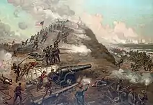 Although not trained as an engineer, he was interested in military fortifications and studied their role in the Crimean War, especially, the Russian fortress of Malakoff at Sevastopol.[6] Lamb spent two-and-a-half years working relentlessly to construct the Confederacy's largest bastion at a length of seven hundred yards that became known as the South’s Gibraltar.[7][8][9]