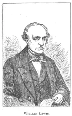 Born in Birmingham, William Lewis moved as a young man to London where he worked for a merchant for a short period. He became a student of chess player Jacob Sarratt, but in later years he showed himself to be rather ungrateful towards his teacher.[1] Although he considered Sarratt's Treatise on the Game of Chess (1808)[3] a "poorly written book", in 1822 Lewis published a second edition of it three years after Sarratt's death in direct competition with Sarratt's own superior revision published posthumously in 1821 by Sarratt's poverty-stricken widow. In 1843, many players contributed to a fund to help the old widow, but Lewis' name is not on the list of subscribers.[1]